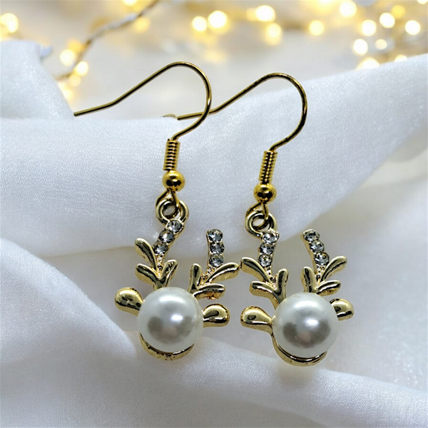 Crafted from quality silver plated and faux pearl reindeer charms, these statement earrings are perfect for everyday style.