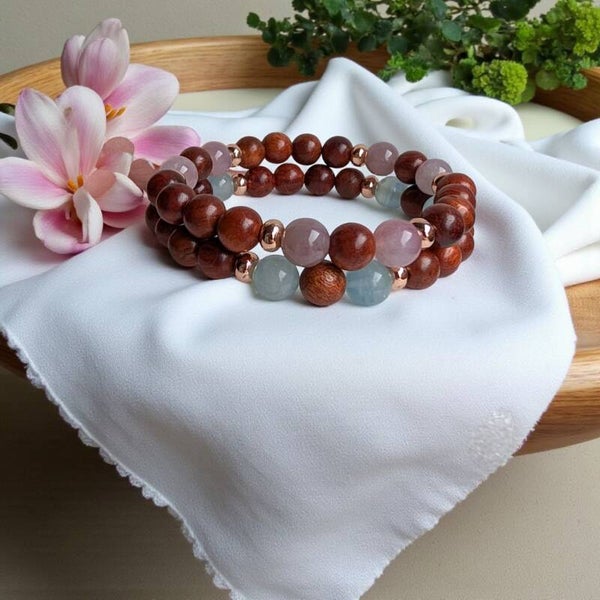 Stack it up with our Rosewood and Madagascar rose quartz beads bracelet
