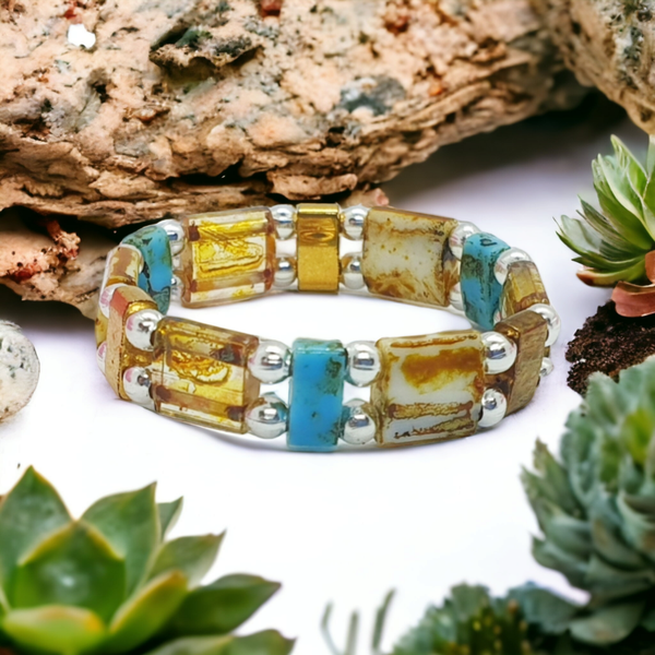 Totally unique, handmade elastic rings made of gorgeous 5mm Japanese tila beads, and tiny 2mm silver plated beads. Ultra soft, stretchy jewellery cord provides extremely comfortable wear, even for people suffering with swelling fingers. One size fits all.